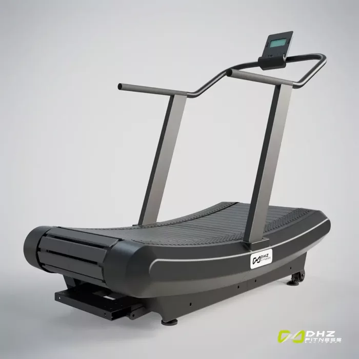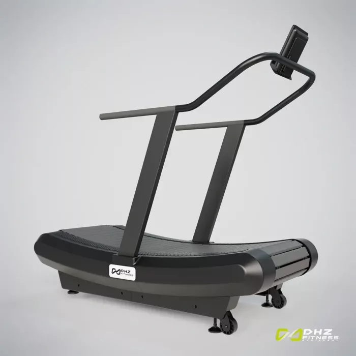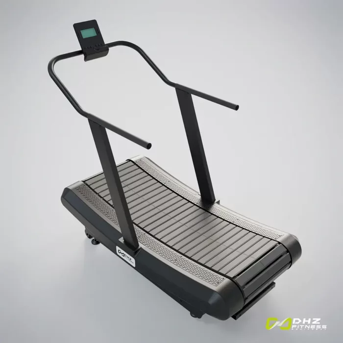 Edles Lamellen Laufband in Kurven-Form. Antrieb durch eigene Kraft. Geschwindigkeit steuerbar durch Positionswechsel auf dem Gerät – weiter vorne → schneller und weiter hinten → langsamer. Training für Kraft, Schnelligkeit, Ausdauer und Beweglichkeit. Stabile Technik mit aufwändigen Kugellagern, Haltbarkeit des Bands 150.000Km, Wartungsfrei. LED Display mit Angaben Kalorien, Distanz, Zeit.
