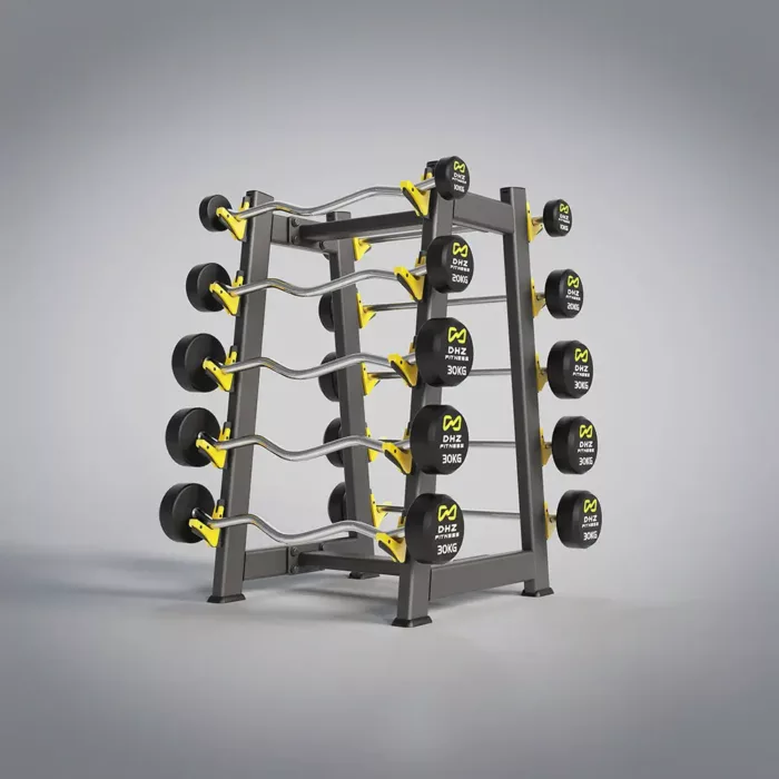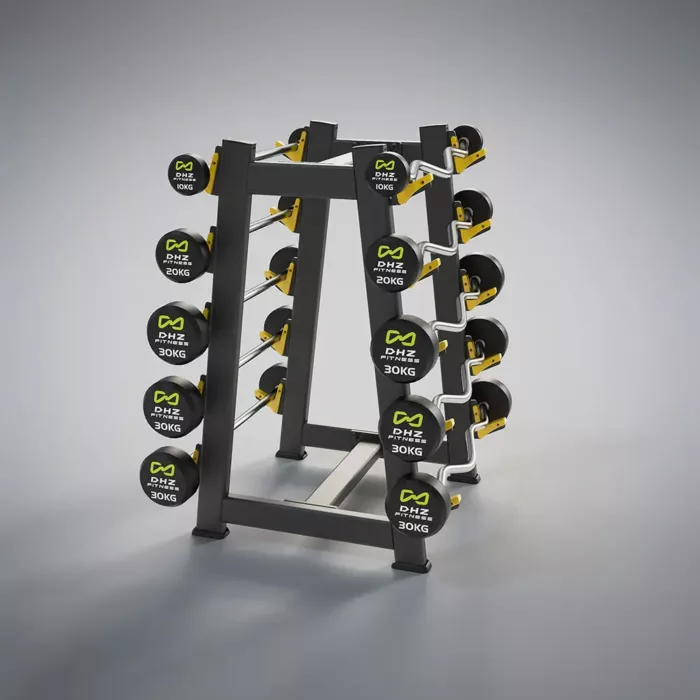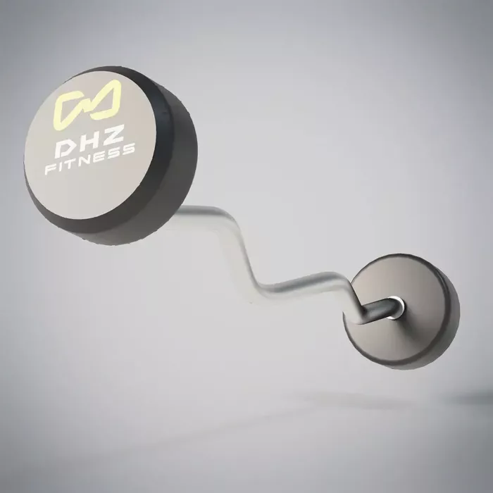 DHZ Fitness Langhantel gebogen aus Gummi gibt es in folgenden Gewichtsgrößen: 10kg, 15kg, 20kg, 25kg, 30kg, 35kg, 40kg, 45kg
