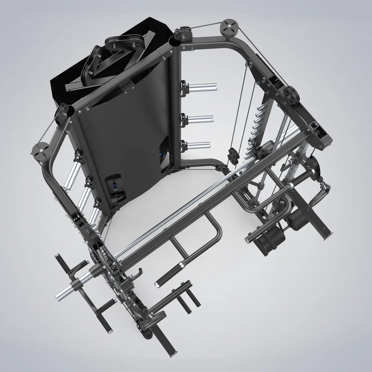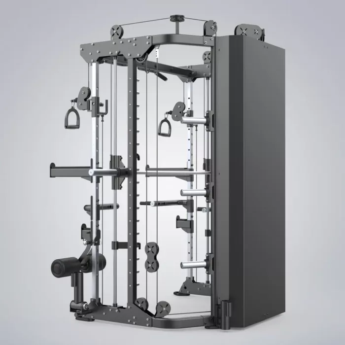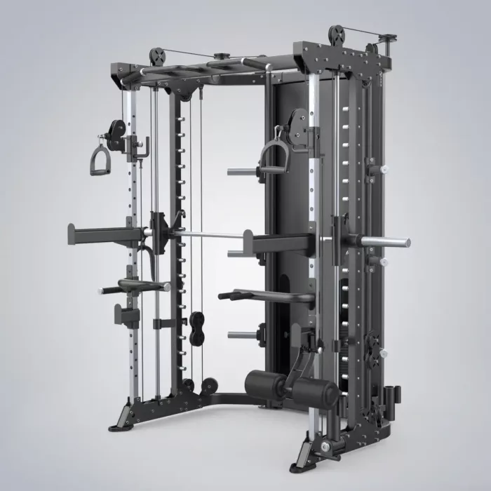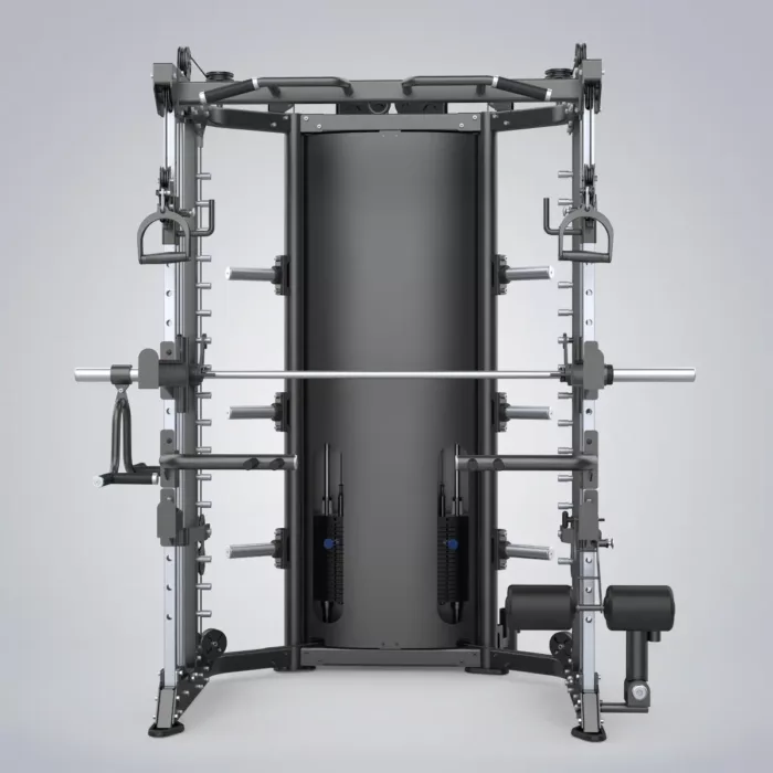 Die DHZ Functional Smith Machine bietet die beliebtesten Trainingsarten in einem Gerät. Die beste Lösung für Krafttraining bei begrenztem Platz. Es verfügt über Klimmzug-/Pull-up-Stangen, Sicherheitsarme, J-Haken für Kniebeugen und Langhantelablagen, ein herausragendes Kabelsystem und wahrscheinlich 100 weitere Funktionen. Das stabile und zuverlässige Smith-System bietet feste Schienen, um Trainierende tiefer zu bringen und Trainingspositionen mit einem Startgewicht zu stabilisieren. Es unterstützt das Training von einer oder mehreren Personen gleichzeitig.