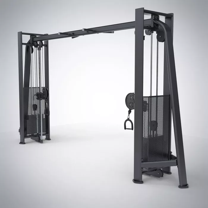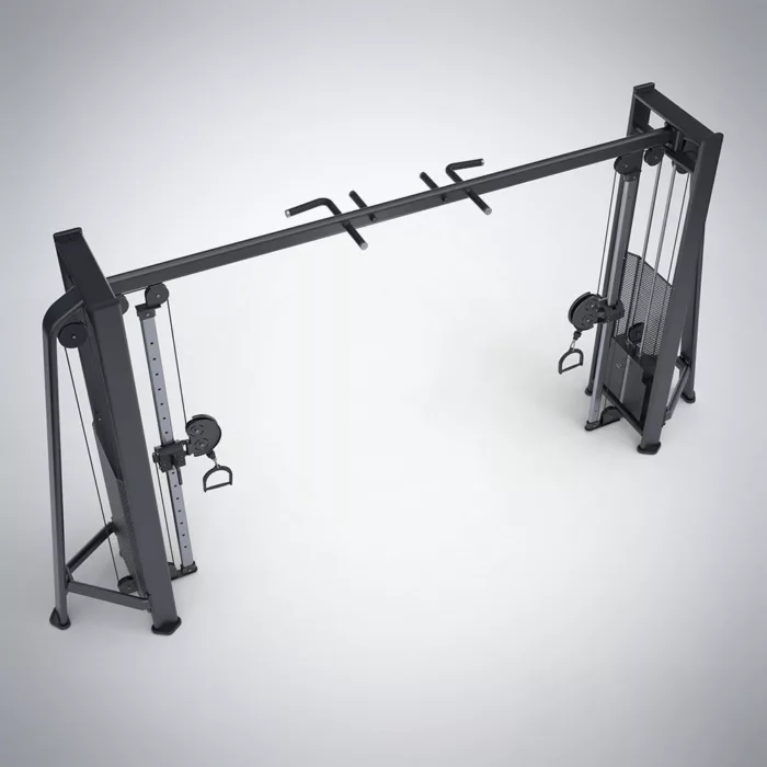 Die einstellbare Crossover der Fusion Pro Serie ist ein eigenständiges Kabelzuggerät, das zwei verstellbare Kabelpositionen bietet. Dadurch können zwei Personen gleichzeitig verschiedene Trainingseinheiten ausführen oder das Gerät einzeln nutzen. Es wird mit einem gummibeschichteten Klimmzuggriff mit zwei Griffpositionen geliefert. Dank der schnellen und einfachen Verstellmöglichkeiten kann der Crossover sowohl allein als auch in Kombination mit Fitnessbänken und weiterem Zubehör verwendet werden, um eine Vielzahl von Übungen durchzuführen.