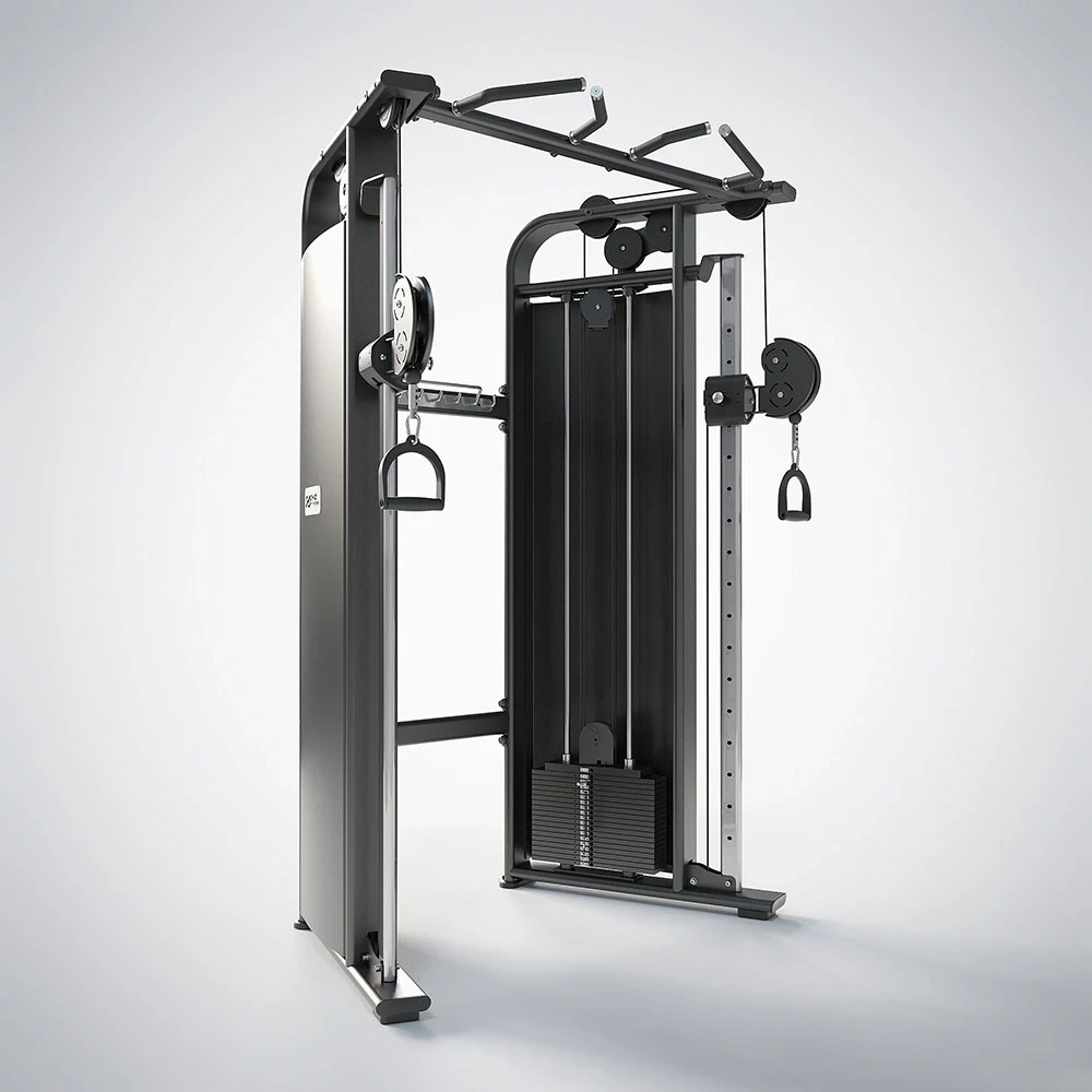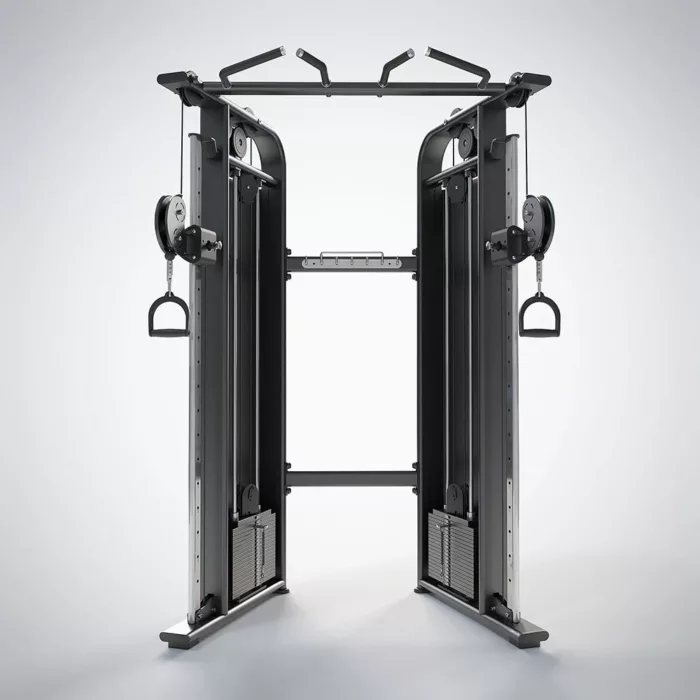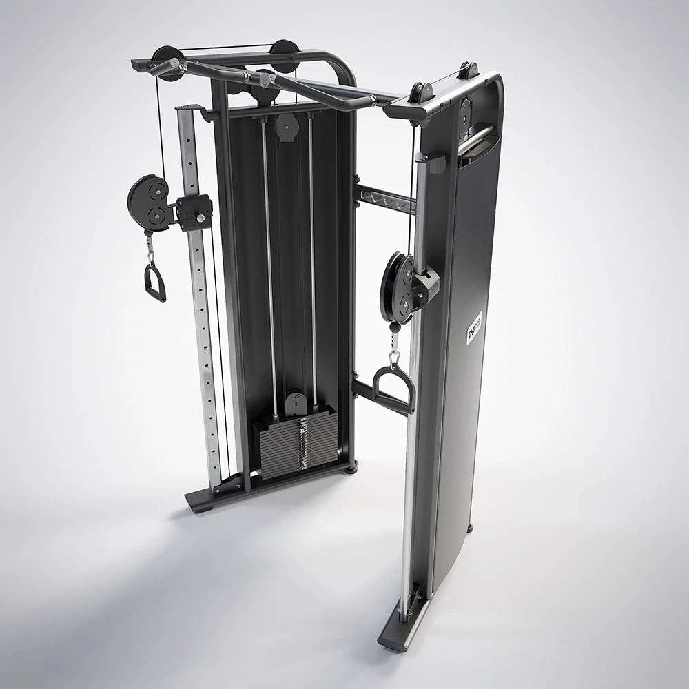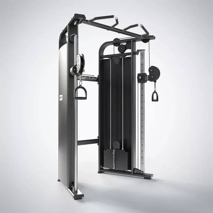 Der schmale doppelt verstellbare Kabelzug mit größerer funktioneller Trainingskapazität und vielen Trainingsoptionen. Auch schnelle Bewegungen sind möglich. Die dualen Kabelzugrollen und lassen eine leichte Bewegungsausführung zu. Die Kabelzugrolle kann in verschiedenen Höhen-Positionen fixiert werden. Zwei verschiedene Griffe bieten Klimmzugoptionen an der oberen Verbindungsstrebe.