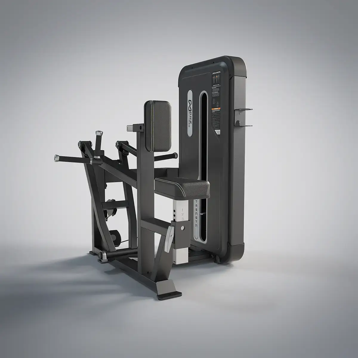 Bewegungsmuster folgt dem natürlichen Bewegungsablauf. Einstellbares Brustpolster und Sitzpolster für alle Benutzergrößen. Fester Griff sorgt für Stabilität beim einarmigen Training.