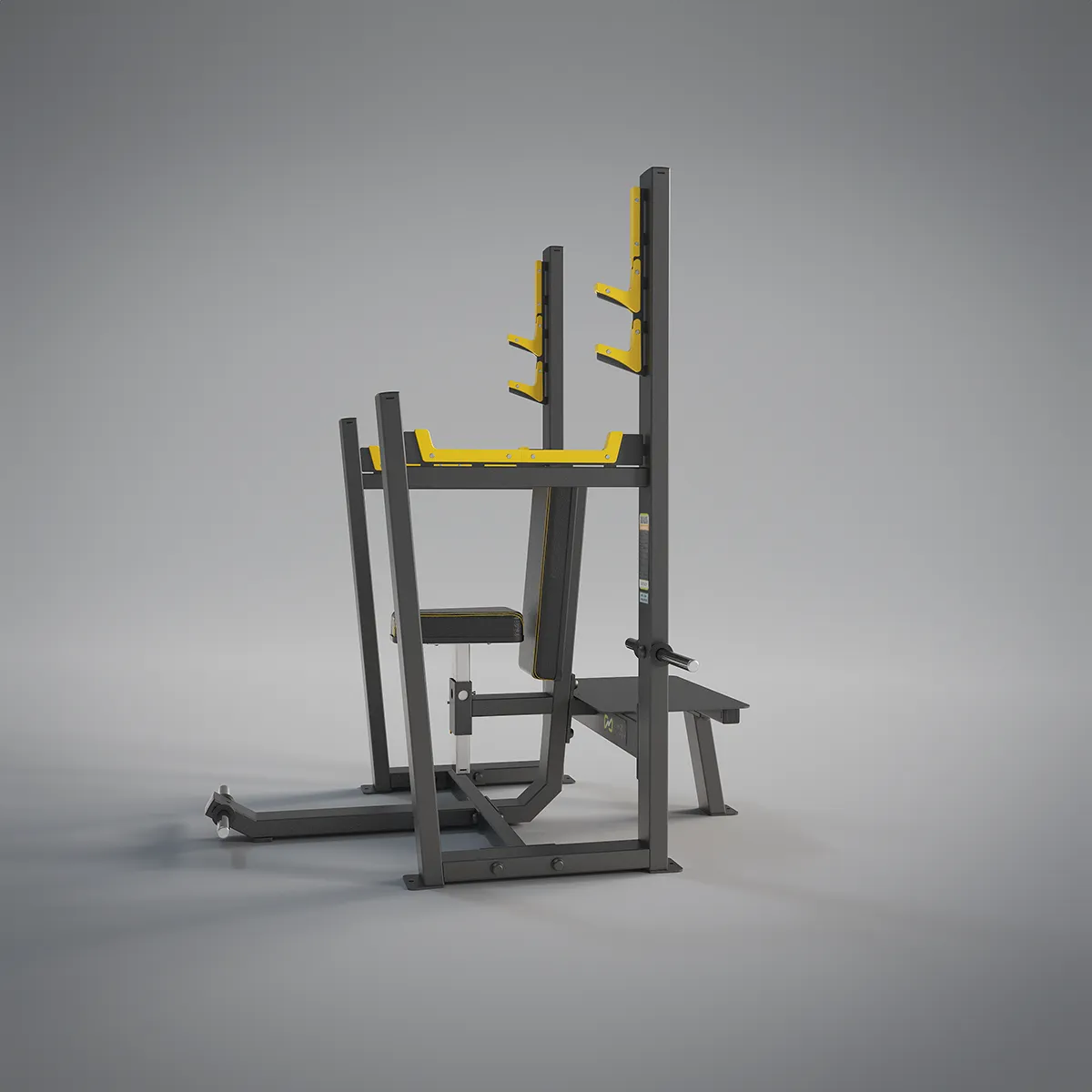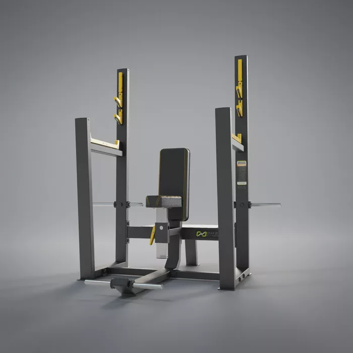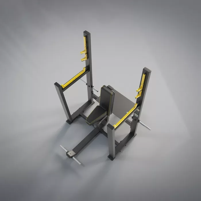 Ablagen vorne und hinten für abwechslungsreiches Gewichtheben. Die Urethan-Ummantelung vermindert Abnutzung und sorgt für ein leises Training. Geformte Urethanpolster schützen den Rahmen