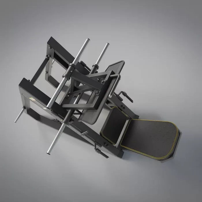 Stabiler Lagermechanismus schafft gleichmäßige Bewegung Fußplatte. Verstellbare Sitzlehne für verschiedene Trainingswinkel. Seitliche Griffe am Schlitten ermöglichen einfachen Ein- und Ausstieg. Ablagen für Gewichtsscheiben. Stabiler Ständer mit sechs Aufnahmen für Olympische Gewichtsscheiben. Leichtes Auf- und Abnehmen der Scheiben.