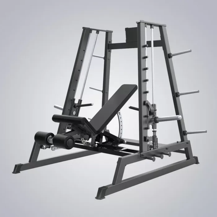 Das Power Smith Machine Dual System ist eine innovative Maschine, die speziell dafür entwickelt wurde, Druckbewegungen der oberen Extremitäten sicher und effizient auszuführen. Sie bietet eine unabhängige Lastverteilung und eine konvergierende Bewegungsbahn, die im Vergleich zu herkömmlichen Smith Machines einen erweiterten Bewegungsradius ermöglicht.