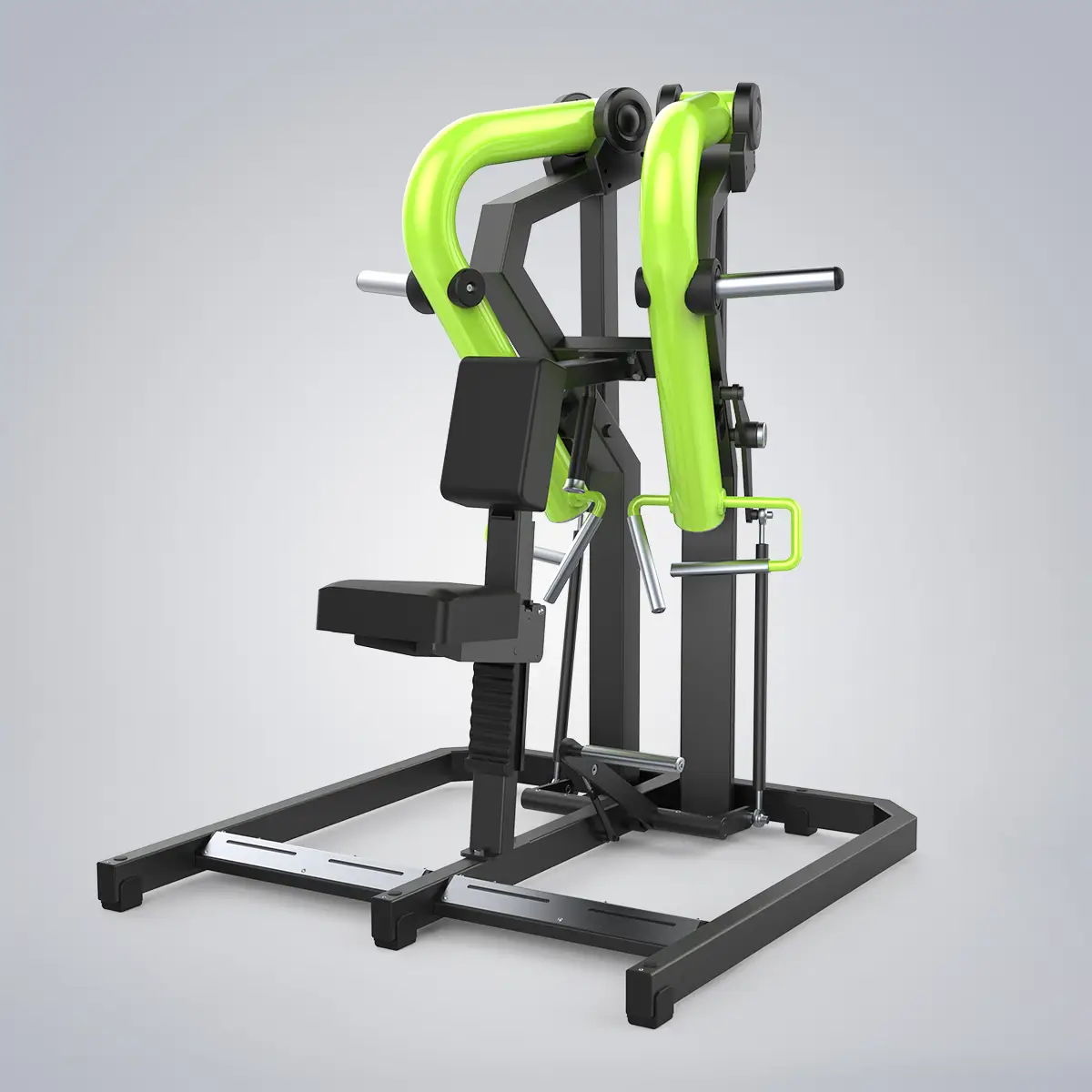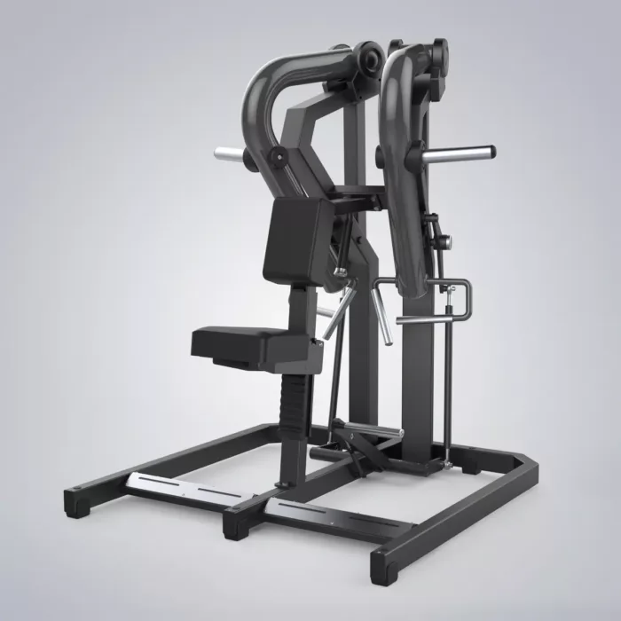 Training für den Rücken. Zugrichtung nach hinten unten. Zwei Griffoptionen sorgen für Abwechslung beim Training und für die Einbeziehung verschiedener Muskeln. Jeder Arm kann einzeln bewegt werden, was einen ausgewogenen Muskelaufbau sicherstellt und auch das separate Training ermöglicht. Zentraler Haltegriff für Stabilität beim einarmigen Training